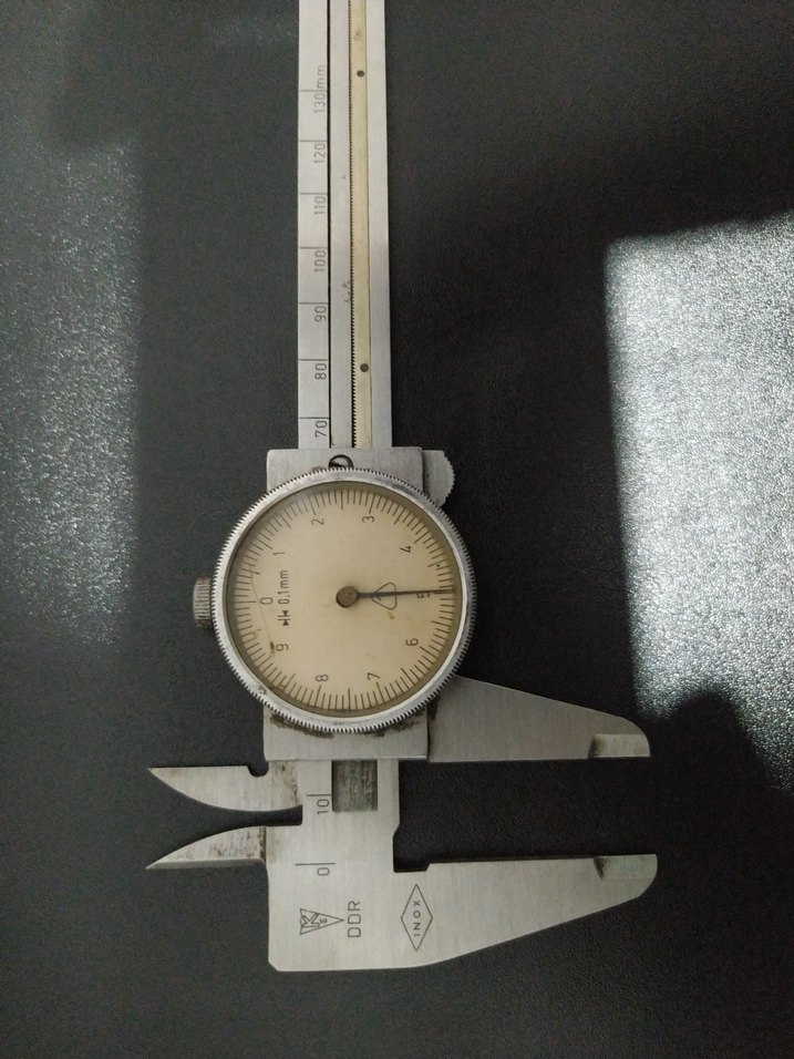 Bej kadranlı metal kumpas, hassas ölçümler için uygun, detaylı ölçeklendirme sağlar. nadir bulunan modeldir.