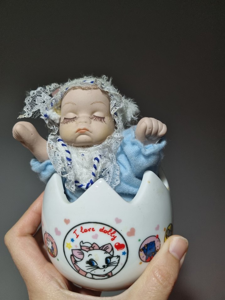 Antika Koleksiyon yumurta icinde porselen bebek.