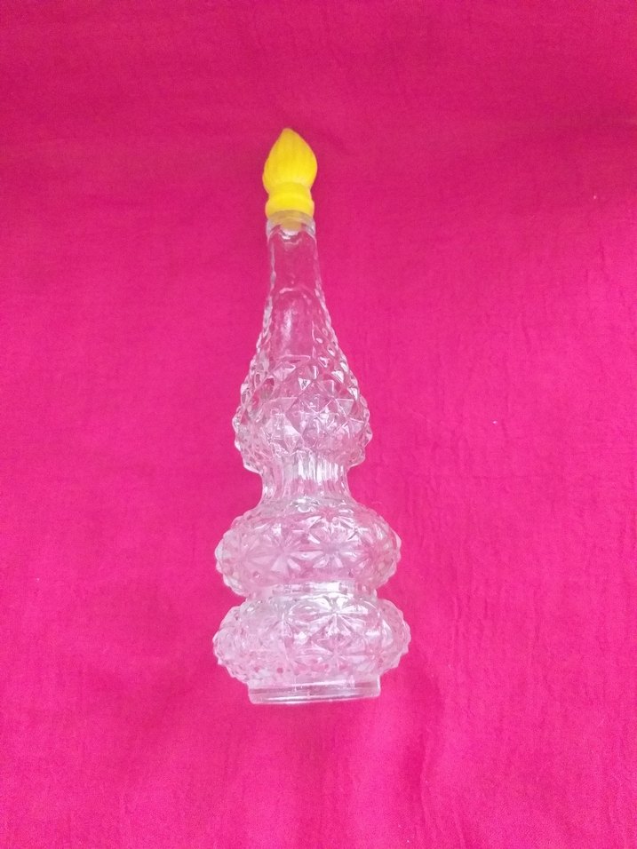 Eskilerden kalma dökme kalın cam kolonya şişesi. Kapak kısmında hafif çatlağı var fakat kullanıma engel değildir.Ölçüleri fotoğraflarda var.