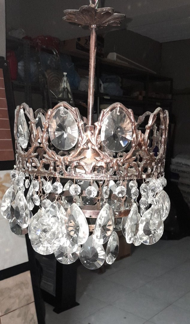 Antika kristal taşlı süslemeli,bronzmalzeme işçiliğe sahip avize.anne annemizin eski evinden kalan antika esyalar bunlar temiz kullanildi taşları tam artık saklayamıyorum yerim yok uygun koyuyorum 2 tane daha var ilanda bir çok esya var ilanlarıma koyacağım.