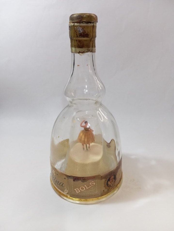 Antika laternali bols İski şişesi. 1950 lerden kalma Laterna mekanizmasının kurmasi sıkışmış. Kurulmuyor. Resimlerdeki hali ile koleksiyon dekorluk