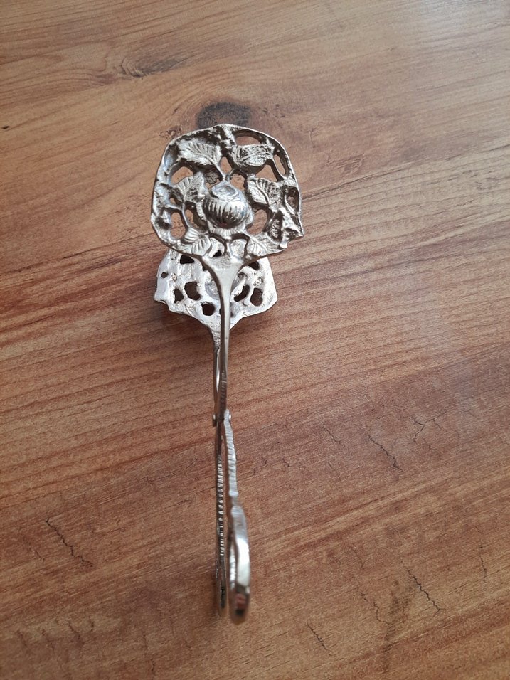 Bej ve gri renklerde detaylı çiçek desenli antika maşa