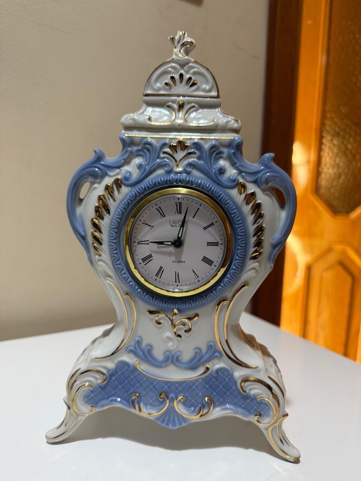 Altın detaylı, Roma rakamlı kadranlı beyaz ve gri seramik masa saati. Zarif vintage tarzda. ⏰