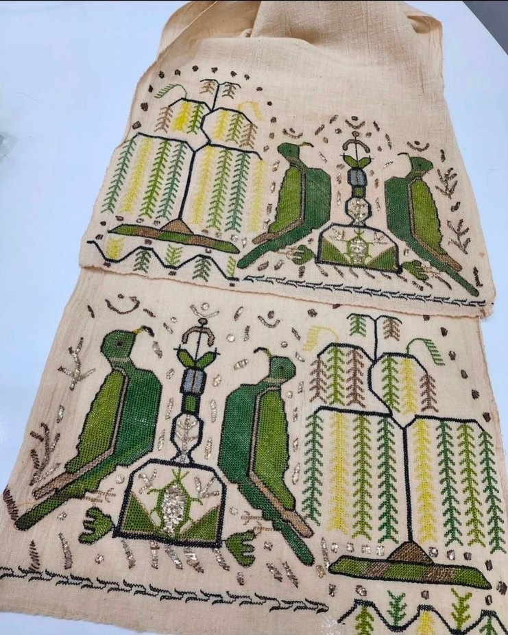 hesap isi ve tel kirma ile islenmis sogut dalları uzun omru simgeler kuşlar ise bereket ve şansı temsil eder
