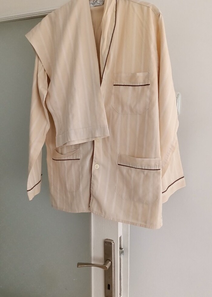 Yılların eskitemedigi sandık ürünü.Vintage severler için çok özel bir takım .saf pamuk dokuma incecik yazlık pijama takımı 3 no yazıyor ,(m ve l ) uyumlu diye düşünüyorum.#dizi#film#plato#90lar#nostalji#vintage#safpamuk#otantik#erkekpijama#pijamatakimi#
