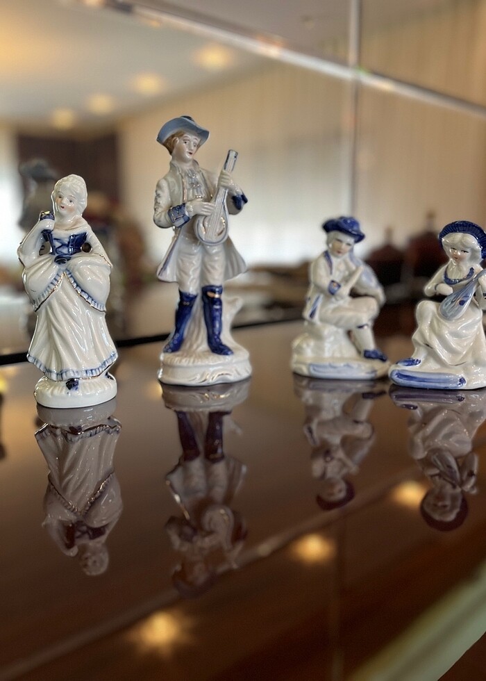 Annemin vitrininden 50-60 yıllık Antika porselen Biblolar iyi durumdadır. Tümünün fiyatıdır. Sadece keman çalan erkek bibloda yapımdan kaynaklı belli belirsiz bir çatlak bulunuyor. En son fotoğrafta görüldüğü gibi. Hiç bir zararı yok.