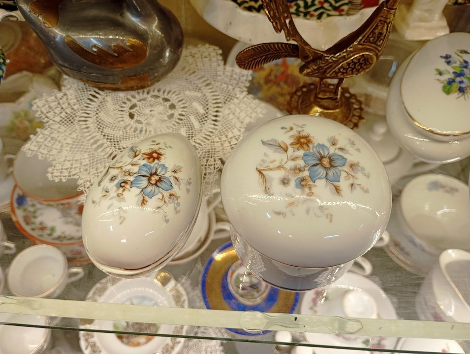 Porselenden kırmızı Çin damgalı 1950lerden , hiçbir kırığı çatlağı vs yoktur yumurta olanın ölçüsü 8 cm yuvarlak olan ise 6 cm