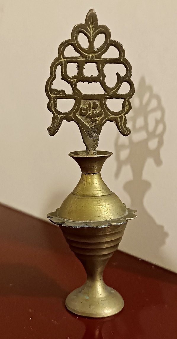 Antika Prinç sürmedanlık hijyen kurallarına göre doğallığını bozmadan prille temizlenmiş sadece koyu renk fotoğraftaki gibi bir ton açığa dönmüştür.Yükseklik 11.5 cm En 10 cm Korunaklı paketle yollanacaktır. Prinç ürünler için ilanlarıma balabilirsiniz. 12 Kasıma kadar satılmaz ise fiyatı biraz daha düşürecegim. Osmanlı döneminde “sürmedanlık” veya “kohl box” olarak da bilinir. Sürme, gözlere sürülen doğal bir makyaj ve bakım ürünüdür; hem estetik hem de koruyucu amaçlarla kullanılırmış. Osmanlı İmparatorluğu’nda sürme, göz sağlığı için hem erkekler hem de kadınlar tarafından kullanılırmış Bu pirinç sürme kabının bir kapağı ve kapağın üzerinde ince bir sürme çubuğu bulunurmuş Kullanılması için çubuk göz kapağından çıkarılıp sürmeye batırılıp göz kenarlarına sürülürmüş Çubuk üzerindeki oyma Osmanlı tuğra motifleri ve Arapça yazı, dönemin sanat anlayışını yansıtmakta ve Parlaklığı ve dayanıklılığı pirinç alaşımından gelmektedir. Yaklaşık 10 cm yüksekliğindedir.