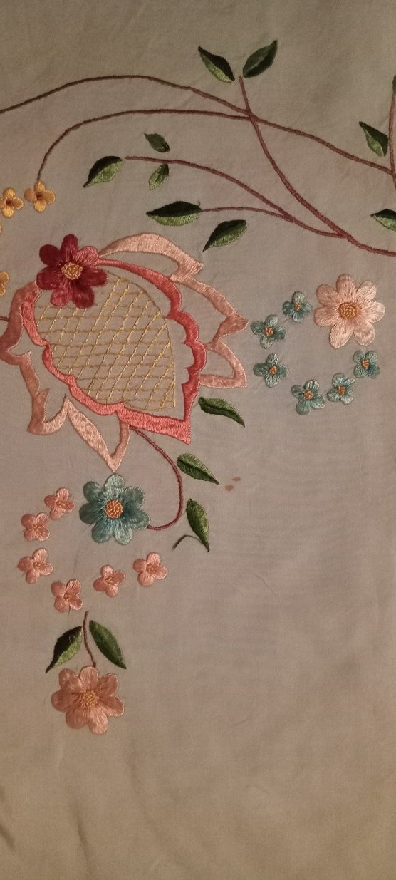 Antika Kirlent Bebek Mavisi renkte ipek tafta cin iğnesi nakis isleme kenarlara organzeden fırfırlari var 80 yillik küçük lekeler var fiyata yansitildi