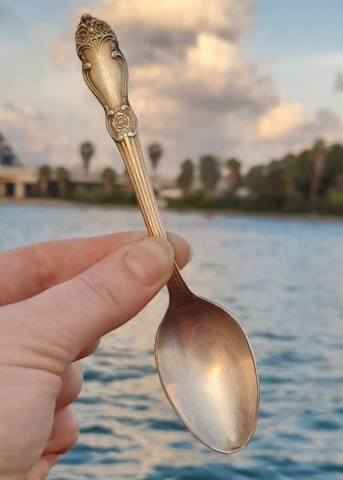 Antika koleksiyon nadir SSCB damgalı tatlı kaşığı. Altın kaplama.