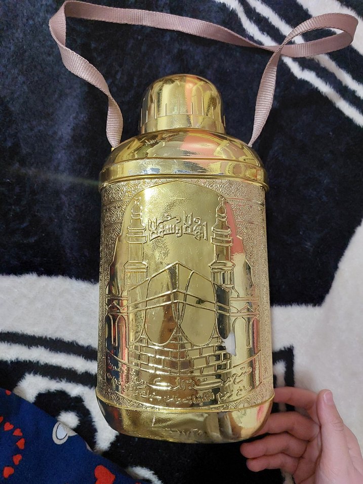 Parlak altın renkli Haçdan gelen antika suluk . Hasarları görselde verilmiştir. minimal düzeyde soyulma ve kapak zinciri kopuktur.