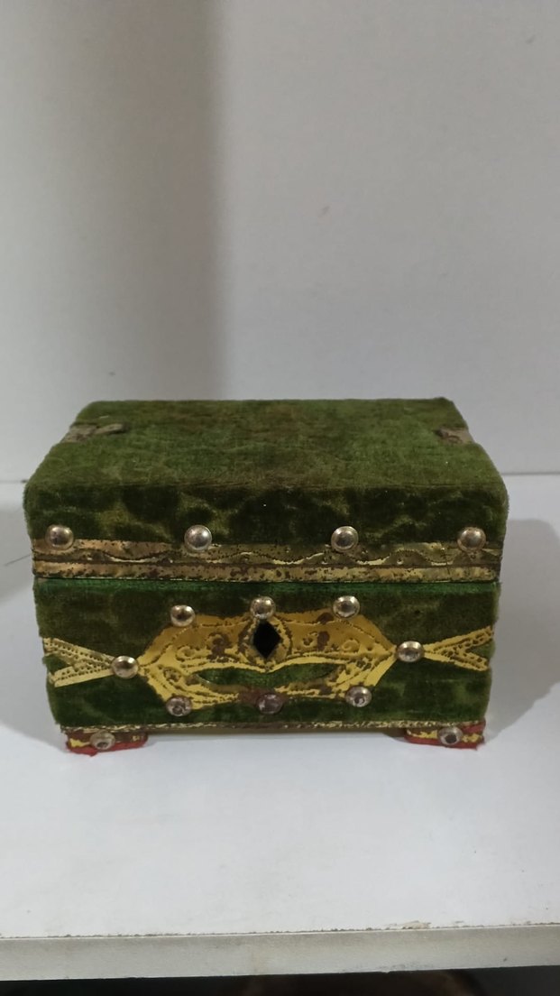 Kadife üzeri işlemeli çok güzel görsele sahip takı kutusu.