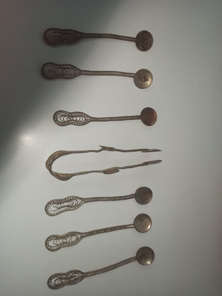 Osmanlı paralarına telkari işlemeli çay kaşık seti vintage çay kaşıkları ve eşlik eden maşa seti. Klasik tarzda işlenmiştir. ☕