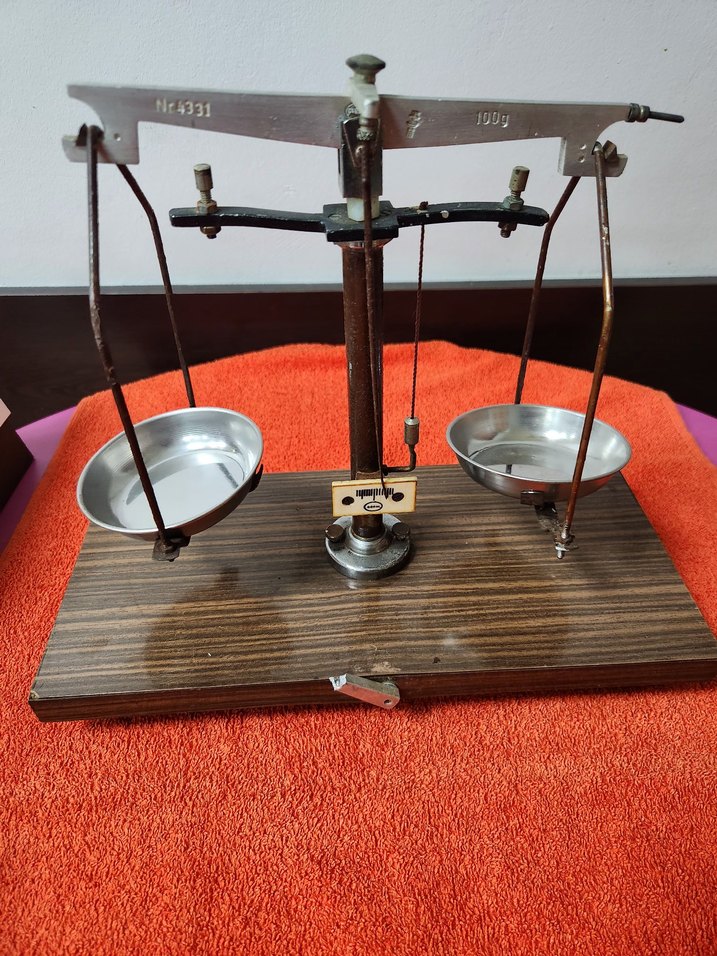 Parlak kahverengi taban ve metal kaplarla donatılmış antika terazi, hassas tartım için uygundur. ⚖️ fiyat temsilidir taklife açıkdır