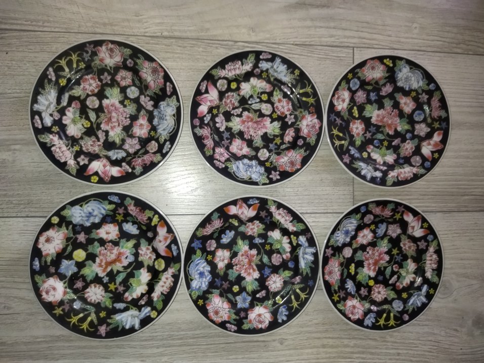 çin el boyama pasta tabağı adet fiyatıdır Koyu zemin üzerinde çok renkli çiçek desenleri bulunan geleneksel tarzda tabak #çin #kore #japan #japon #japonya