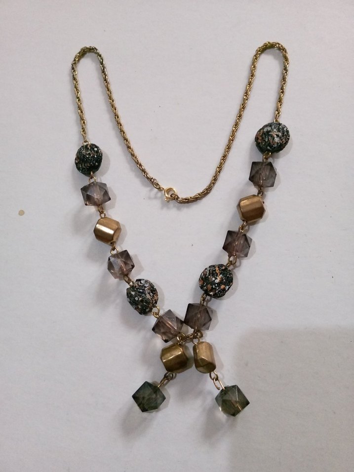 antika vintage Uzun Altın Renkli Boncuklu Bohem Kolye