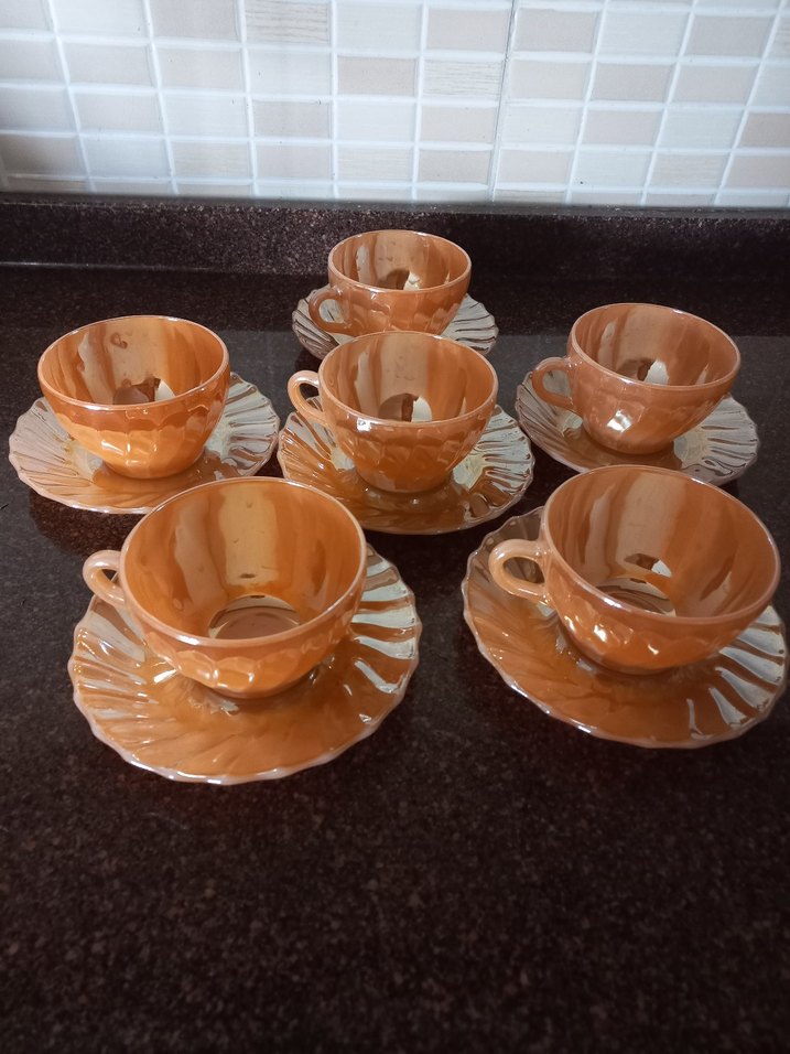 Antika arkopal yurtdişi parlak yüzeyli fincan ve tabak seti. Sıcak içecekler için uygundur. ☕
