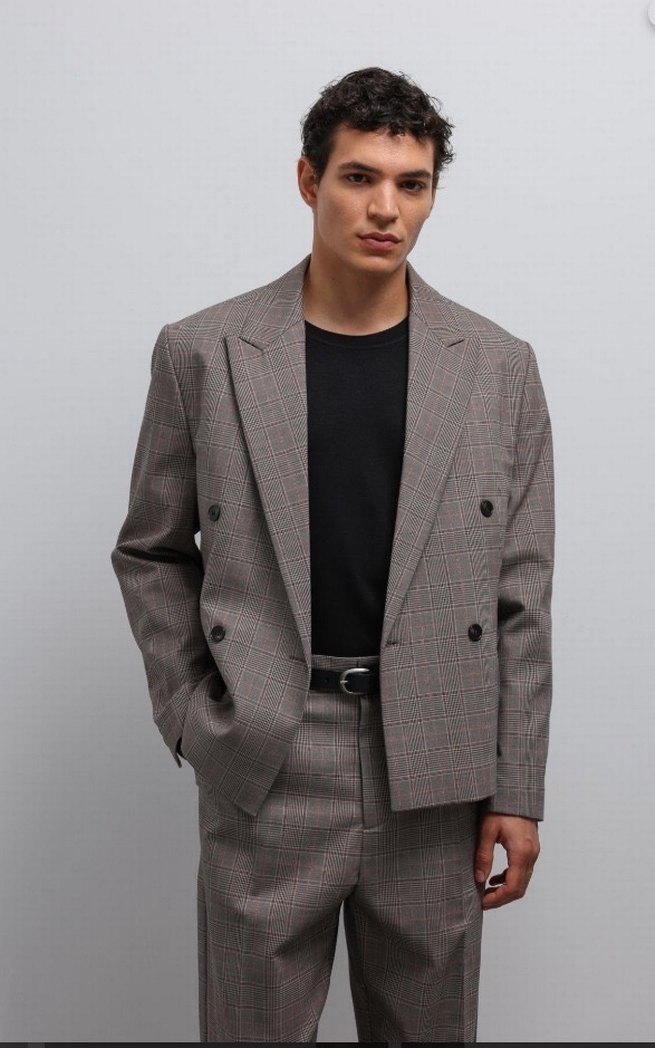 Antioch Erkek Gri Ekose Regular Fit Takım Elbise