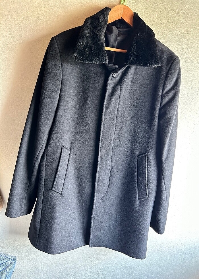 Çok az kullanıldı ve ilk günkü gibi. Bedeni uymadığı için satılıktır. Kürk yaka düğmeli olup istendiğinde çıkarılabilir.