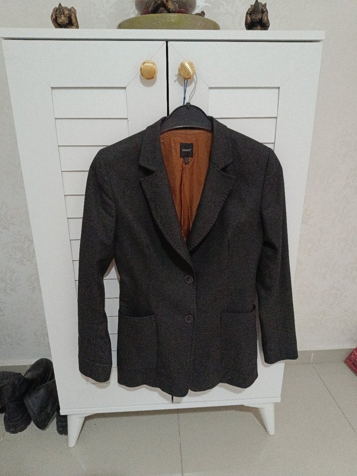 Antrasit Düğmeli Kadın Yün Blazer