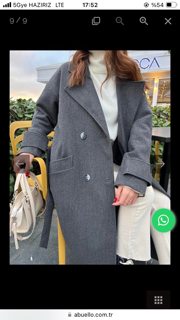 Çift düğmeli kapama ve yan ceplere sahip, yumuşak ve sıcak kumaştan uzun antrasit kaban. Soğuk havalar için uygundur. Marka abuello birkaç kere kullandım. özelden üzerimdeki hallerini atabilirim