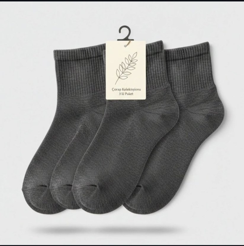 Antrasit renkte, orta boylu, bol kesim erkek çoraplarından oluşan 3'lü paket. Desensiz ve rahat dokusu ile konfor sunar.