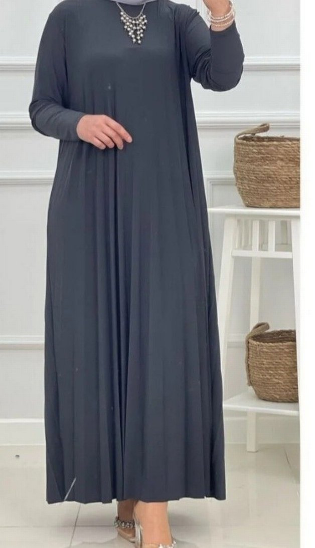 Antrasit Gri Uzun Pliseli Salaş Kadın Elbise