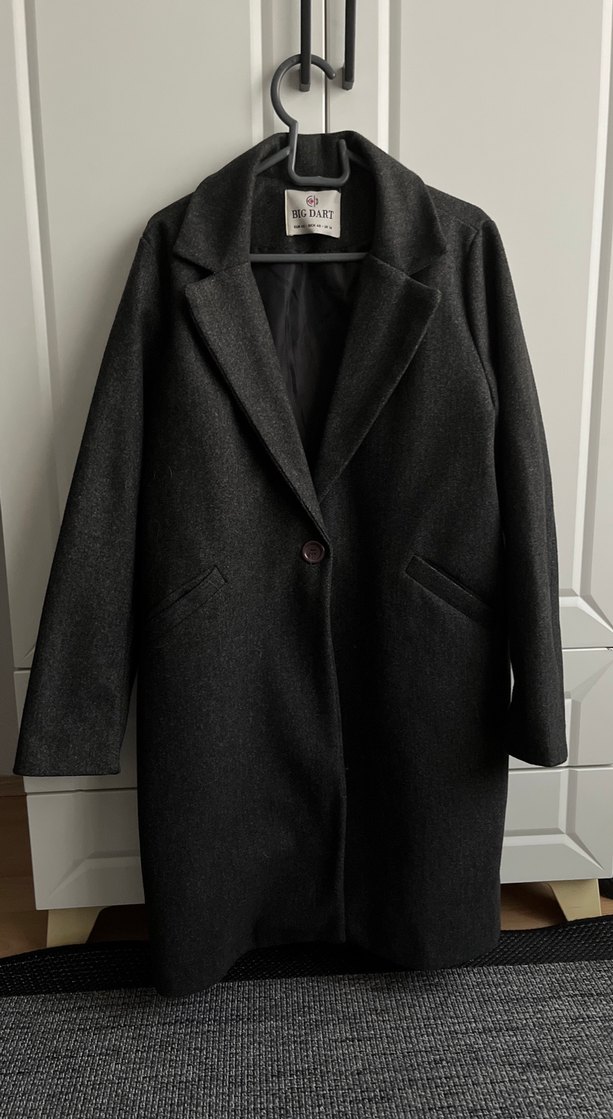 Antrasit renkli, tek düğmeli, klasik yakalı ve iki yan cepli kaban. İç kısmı rahat bir astarla kaplıdır. Yeni üründür yalnızca bir kez giydim. Hiç bir kusuru vs yok. Orta boy kabandır. M bedene uygundur.