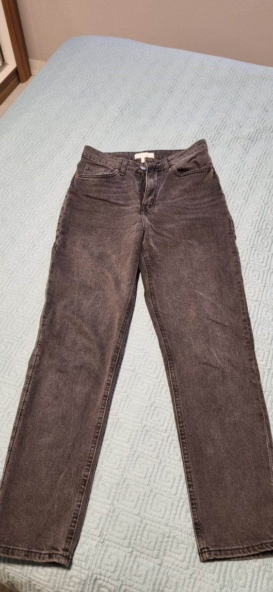 Günlük kullanım için düz tasarımlı, antrasit mom jean kot pantolon. Rahat ve zahmetsiz şıklık sunar.