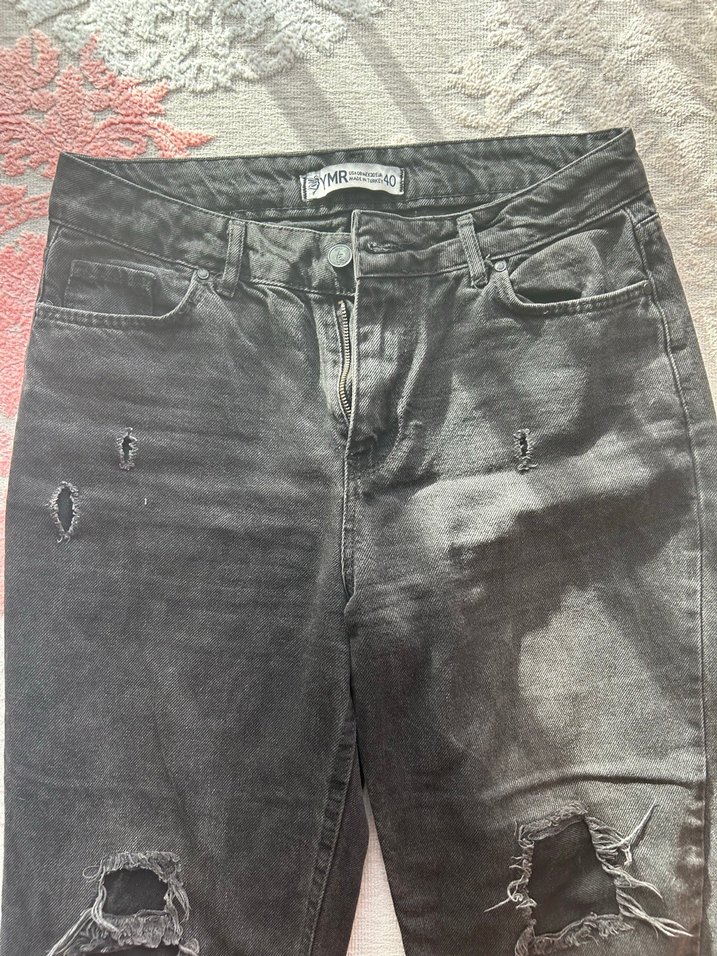 Yırtık detaylı, salaş kesim antrasit kot pantolon, tokalı tasarımıyla grunge punk sokak stili sunar, günlük kullanım için uygundur.