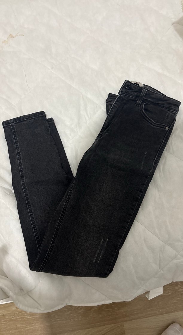 Bu antrasit skinny denim pantolon ve desensiz tasarımıyla günlük sokak stili için uygundur.