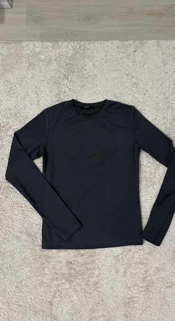 Antrasit uzun kollu, bisiklet yaka, düz ve basic tasarımlı kadın tişörtü. Sentetik kumaştan, günlük sokak stiline uygun.