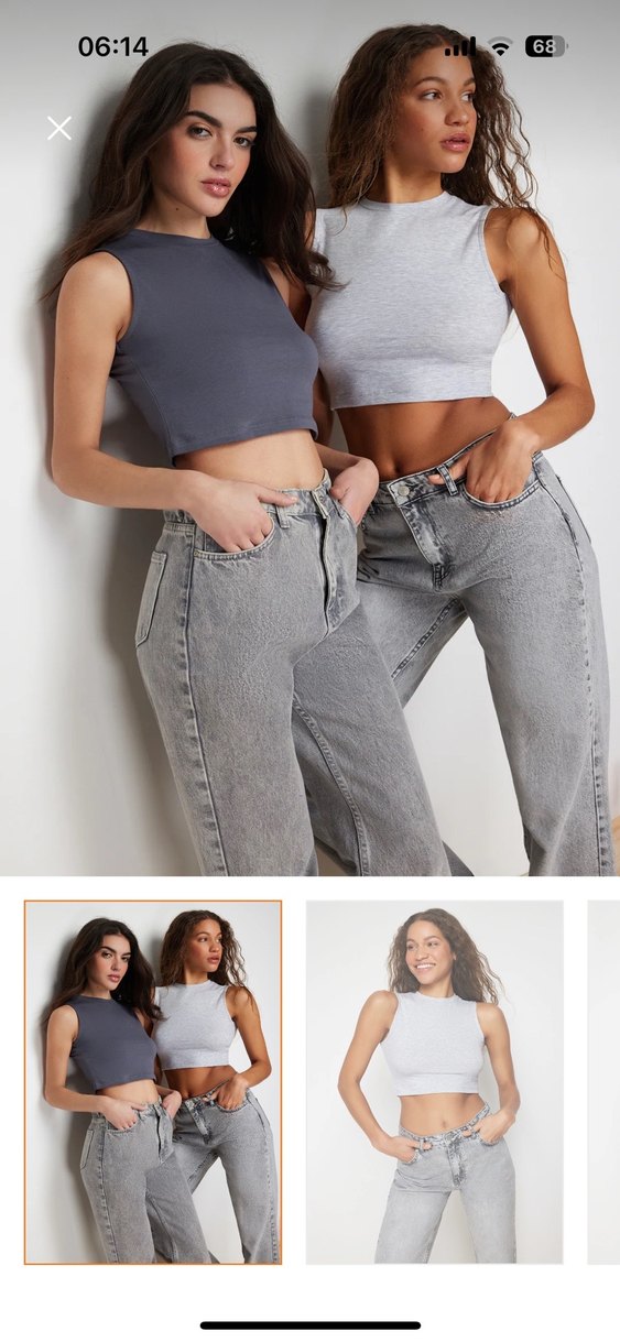 Pamuklu esnek örme crop atlet. 1-2 kere giydim. Fakat kalıbı biraz dar.