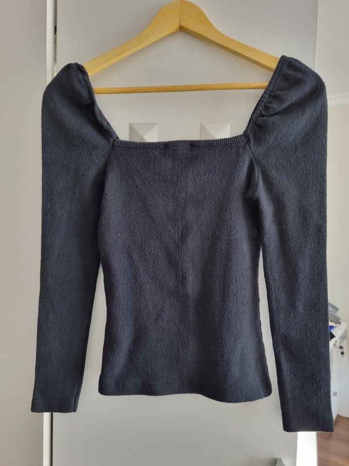 Antrasit renk kare yaka bluz. • Beden: S/M • Kare yaka, balon omuz detayı • Uzun kollu • Kumaş: %95 pamuk, %5 likra • Esnek ve vücuda oturan yapı Hem günlük hem şık kombinler için uygundur. Temiz, sorunsuzdur.