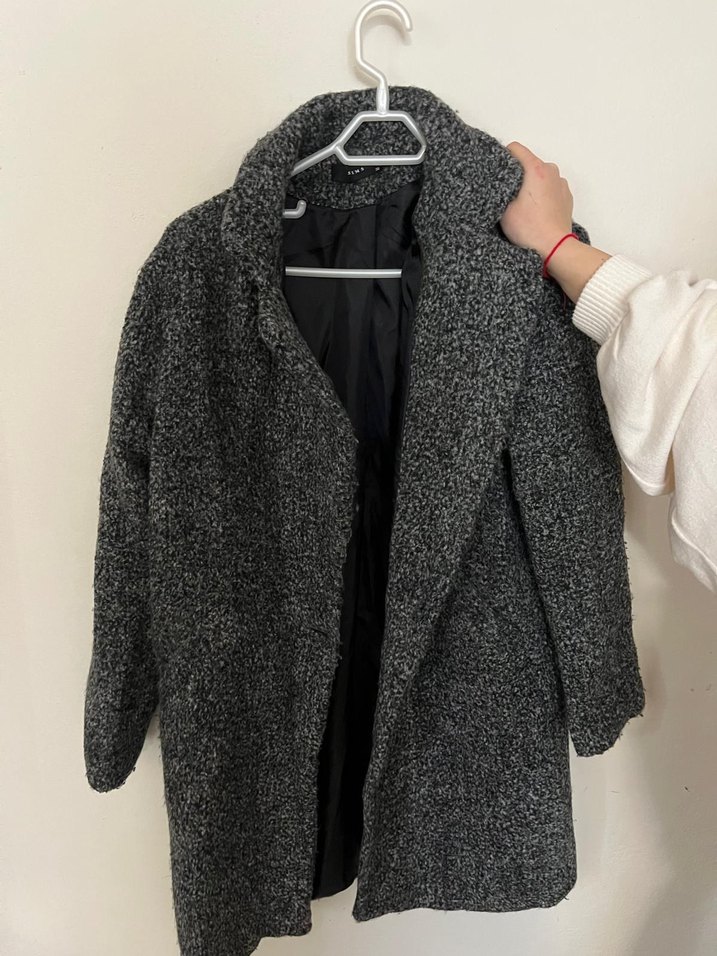 Antrasit renkli kaban, yumuşak ve kalın dokusuyla soğuk havalarda sıcak tutar. İç kısmı astarlıdır.
