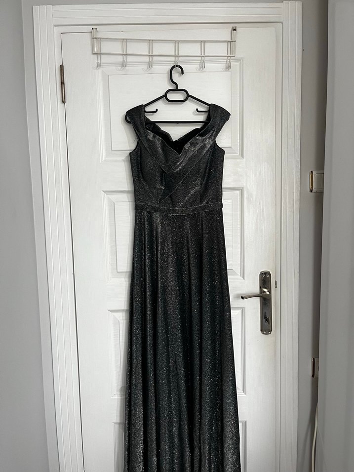 Antrasit renkli simli v yaka sıfır kol göğüs destekli abiye elbise mezuniyet,nişan ,düğün vb için oldukça uygun hiç giyilmedi