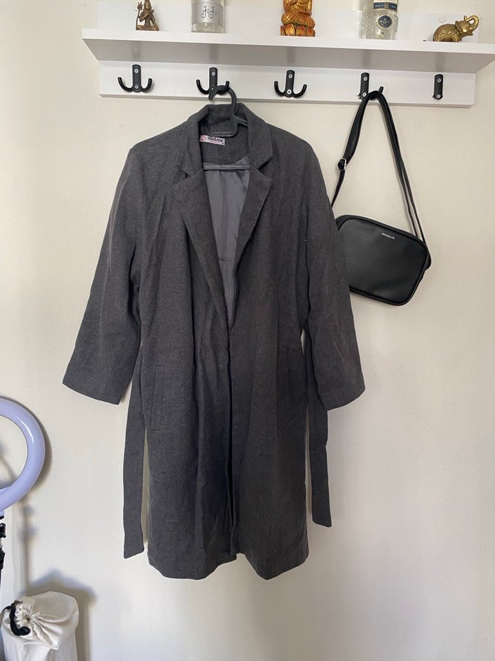 Beden L olan bu antrasit uzun kaban klasik yakaya ve yumuşak astara sahiptir, serin havalar için uygundur. birkaç kez giyildi sorunsuz