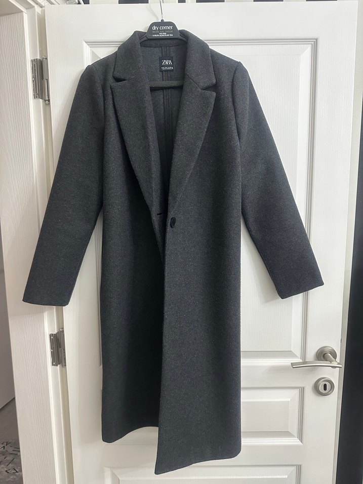 Antrasit renkli, uzun ve klasik kesime sahip kaban. Tek düğmeli kapanış ve yakalı tasarımıyla şık ve zamansız bir görünüm sunar.