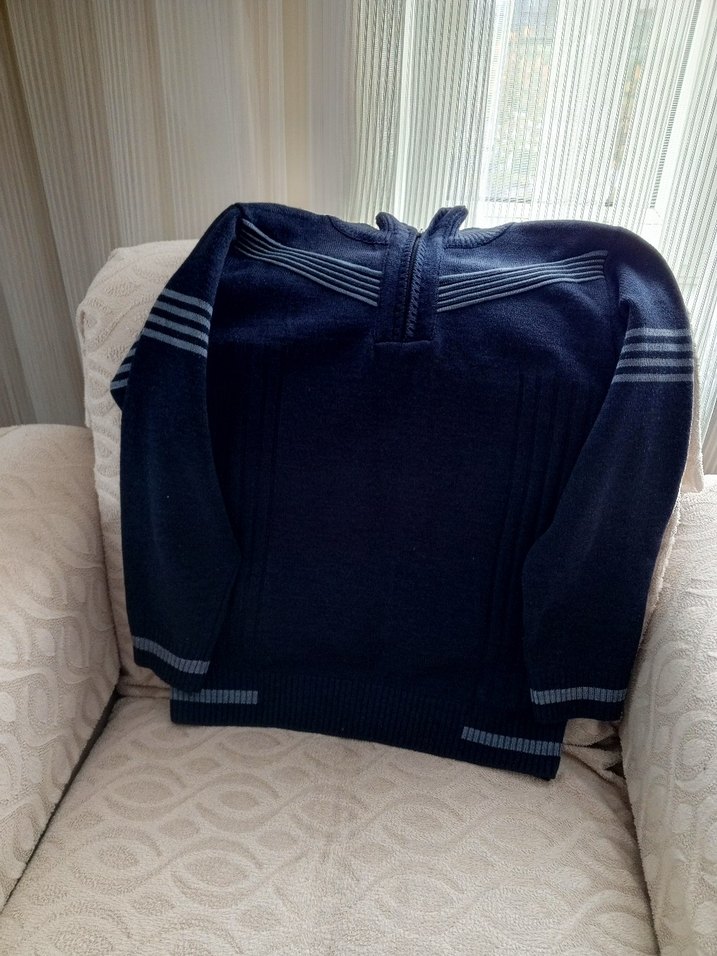 Bu koyu gri erkek kazak, yün örgü, yüksek yakalı ve uzun kollu, rahat ve normcore tarzıyla günlük kullanım için uygundur.