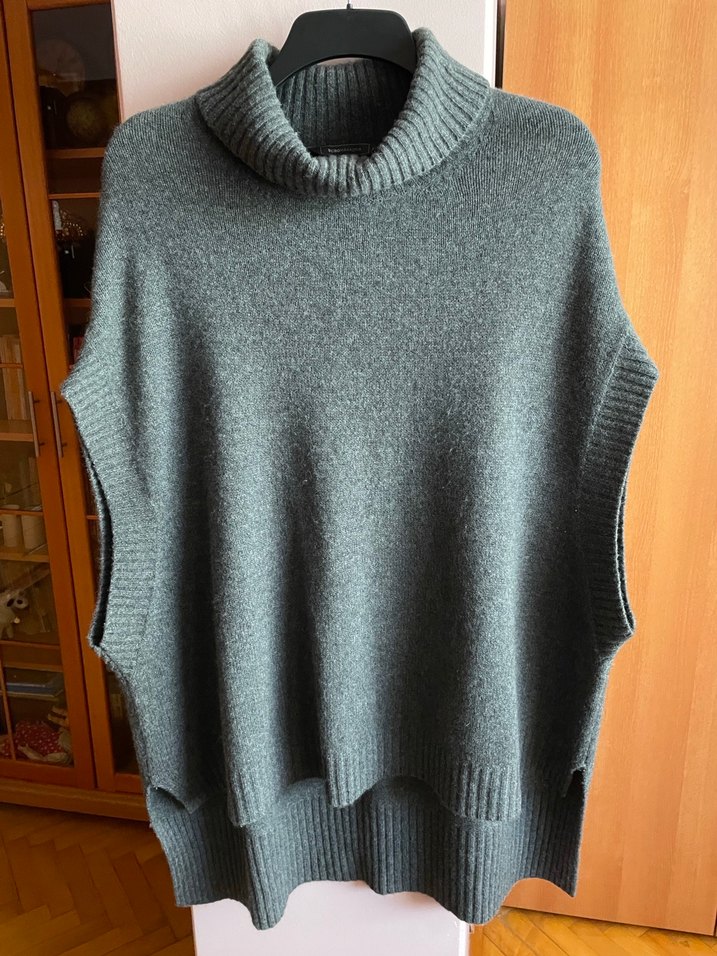 80%yün 20% kaşmir panço. Dik yaka yanı yırtmaçlı, omuz-etek boyu 75cm, arkası 15cm daha uzun. M/L beden 40/44 beden uyumlu çok tarz✨ orjinal yurt dışından aldım..Meraklısına✨