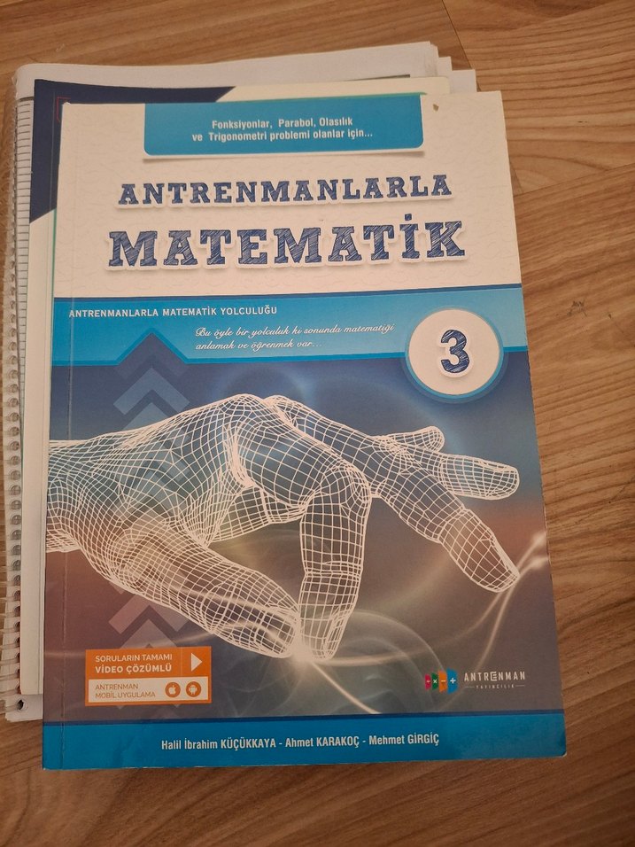 Antrenmanlarla Matematik 3, fonksiyonlar, parabol, çember ve trigonometrik problemleri video çözümleriyle sunar. 2019 baskı 4. tamamı ve 2. ünitenin yarısı çözülü kurşun kalemle silinebilir geriye kalan 10 ünite hiç çözülmedi