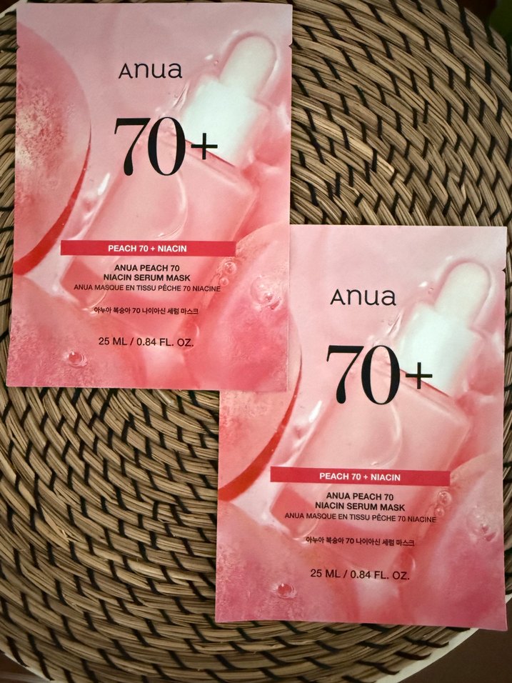 Anua 70+ Şeftali ve Niacin Serum Maskesi, cildi yenileyip nemlendiren 25ml serum içerir.