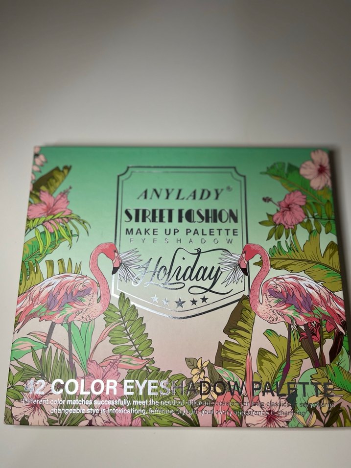 ANYLADY Street Fashion Holiday göz farı paleti, 12 canlı renkten oluşur ve flamingo ile çiçek desenli tropikal bir kutuya sahiptir.