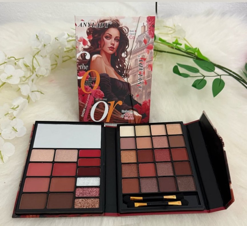 ANYLADY göz farı paleti, mat ve ışıltılı çok sayıda koyu ve canlı renkten oluşur. Kolay uygulama için çift uçlu fırçalar içerir.