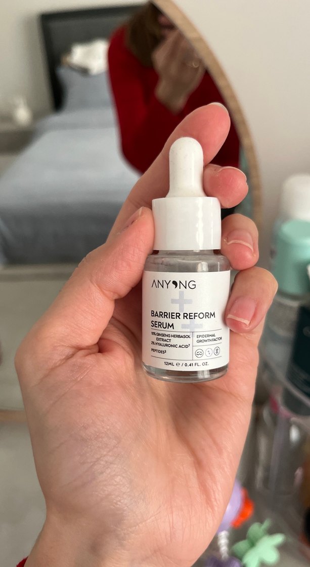 Anyong Barrier Reform Serumu, bitkisel özler ve hyaluronik asit içerir, cilt bariyerini güçlendirir ve nemlendirir. Çok iyi bir serum ciltteki lekeleri azaltıyor çok az kullandım şişede kalan görünüyor deneme boyudur
