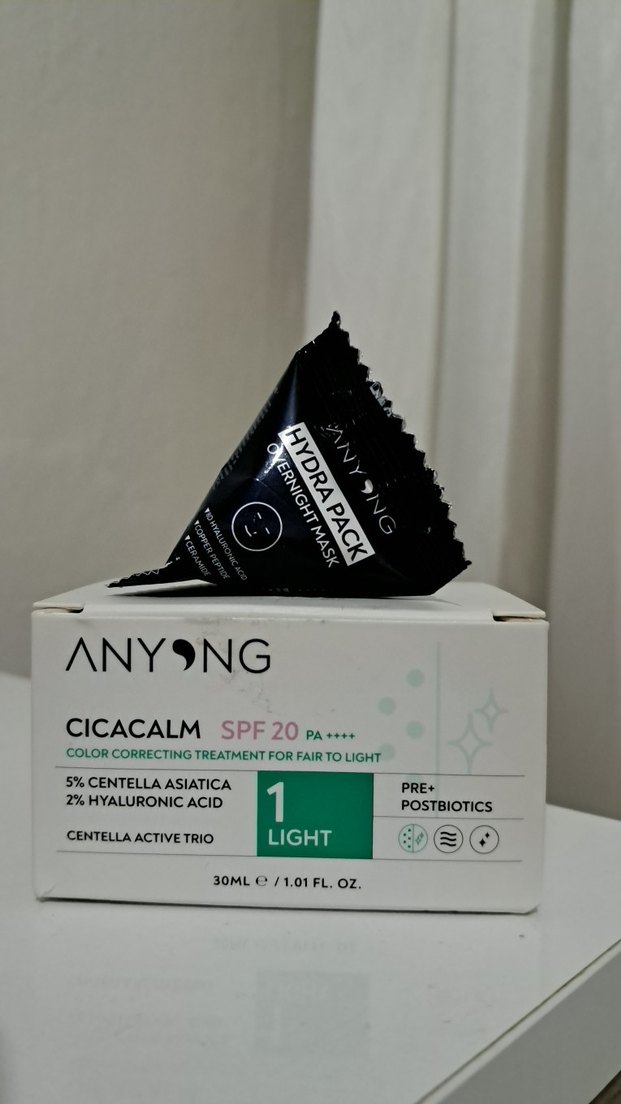 Anyong Light SPF 20, açık tenler için renk düzeltici. %5 Centella Asiatica, %2 Hyaluronik Asit ve prebiyotiklerle cildi yatıştırır ve nemlendirir.