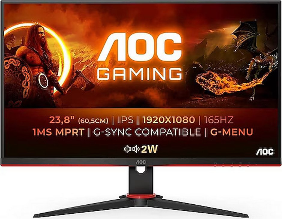 AOC 24 inç kırmızı oyun monitörü, 1920x1080 IPS ekran, 165Hz yenileme hızı ve 2W hoparlörler sunar. G-Sync uyumlu. İADE YOKTUR TEST ATILIR