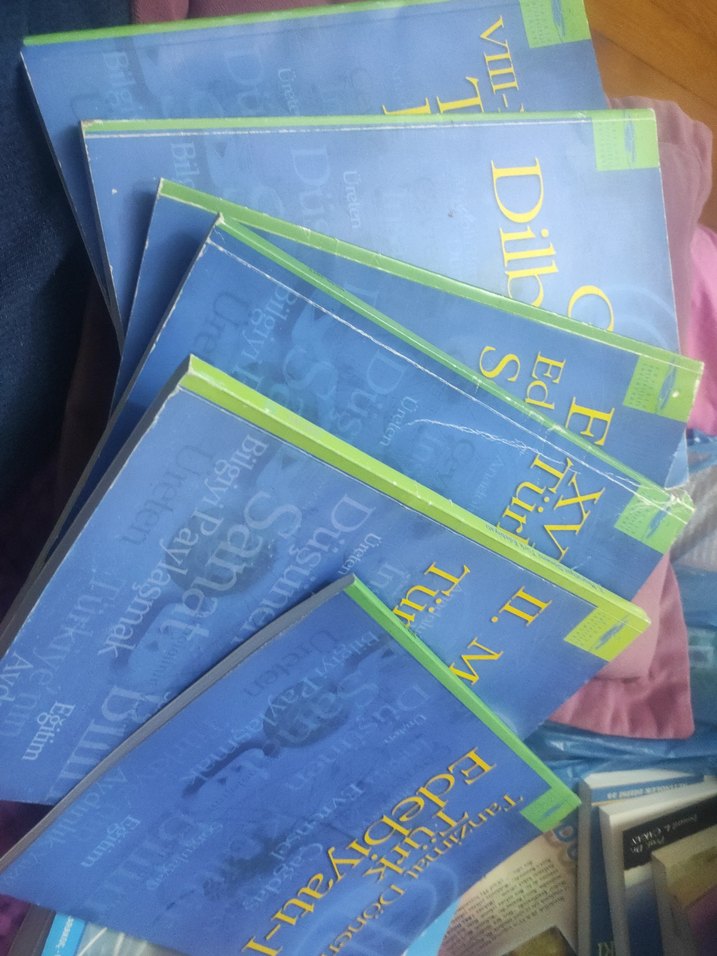Çeşitli ciltlerde AOF dil ve edebiyat ders kitapları seti.