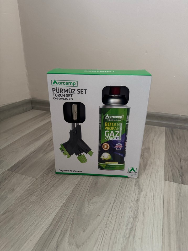 Aorcamp pürmüz seti, torch ve butan propan gaz karışımı içerir, hem iç hem dış mekanda kullanılabilir.