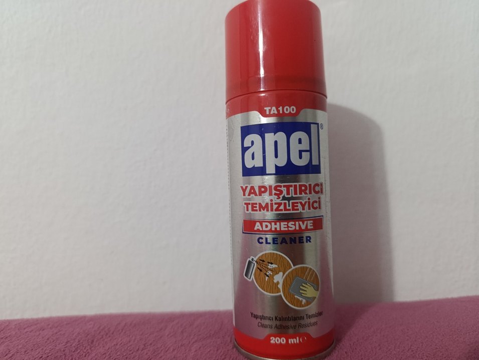 Apel yapıştırıcı temizleyici, 200ml sprey kutuda yapıştırıcı kalıntılarını etkili şekilde temizler. Uygulaması kolay ve hızlı etkili. sıfır kutu hiç kullanılmadı